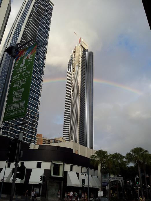 But I think I know where the treasure is buried. I had an indicator of it in January and at the time almost bobbled my latte. The most beautiful rainbow stretched across Surfers Paradise and so high up in the sky. It took my breath away.